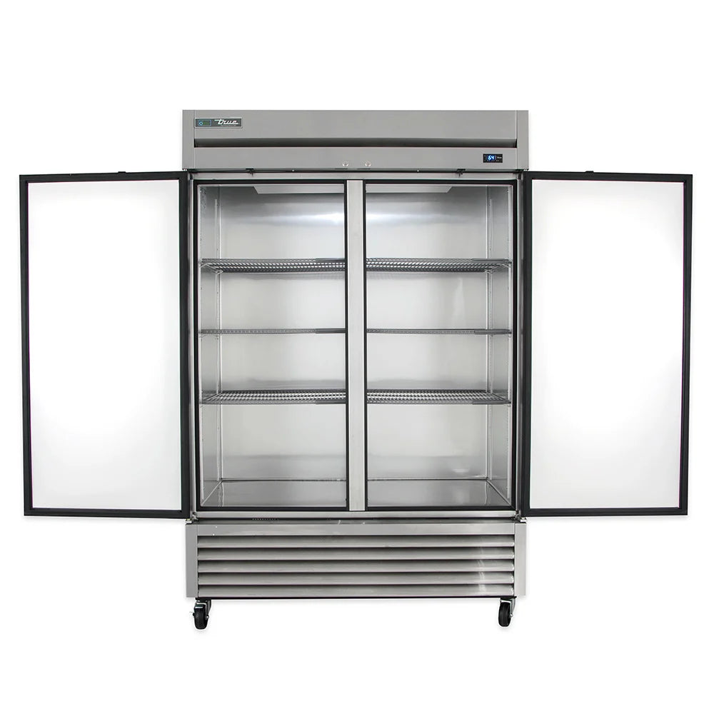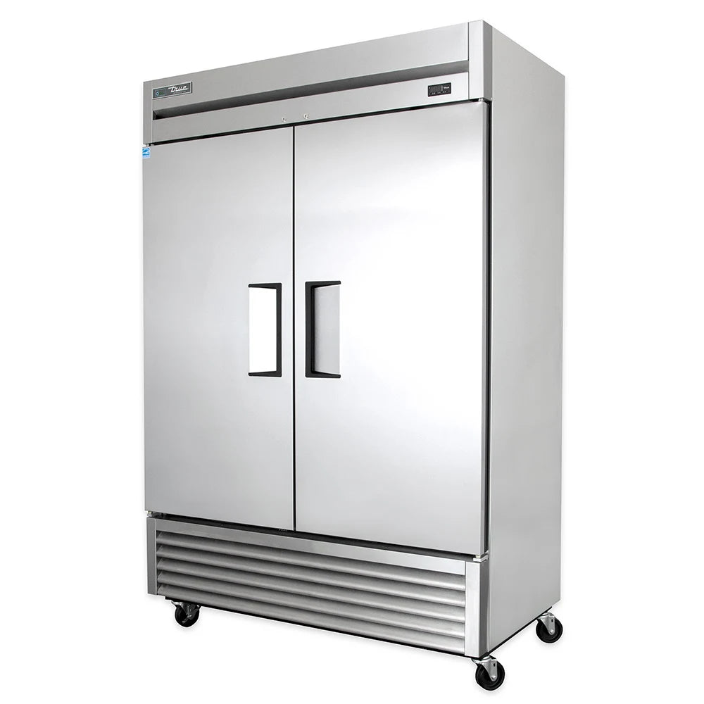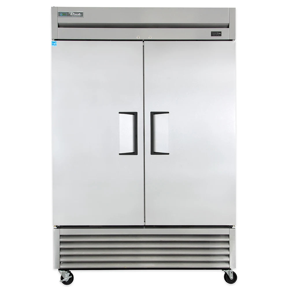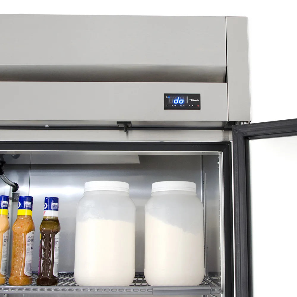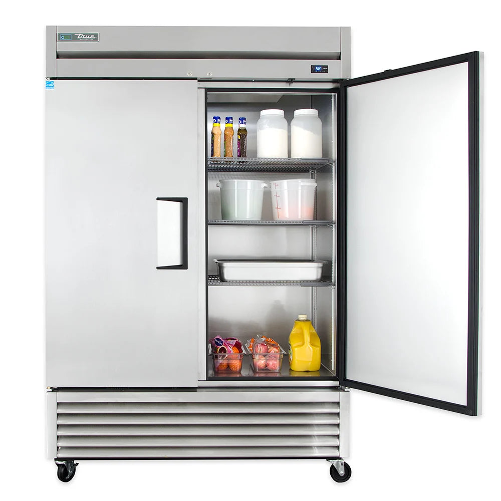 The True T-49-HC is a heavy-duty, two-section reach-in refrigerator designed for professional foodservice. Built with stainless construction and an efficient hydrocarbon refrigeration system, it maintains precise temperatures between 33°F and 38°F to keep products fresh and safe.