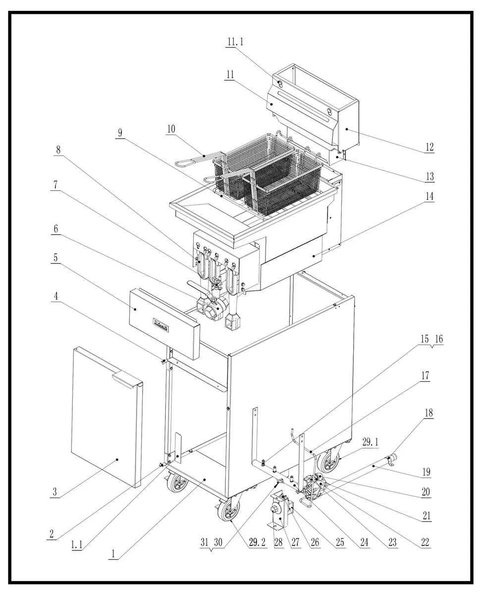 • Safety System: Pilot and thermocouple safety, high-limit shut-off, and cool-zone design to extend oil life.
